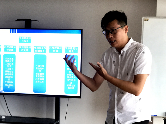 技術中心“環保管家”培訓師于海闊先生,主要通過國家及各省市、地區環境保護綜合治理和服務工作過程中,大力推進第三方服務的發展策略、現狀和趨勢,推進“環保管家”第三方綜合管理的政策,環境治理社會化、市場化、專業化的服務管理模式導向,生態環境綜合服務主要內容和要求進行了進行了講解。